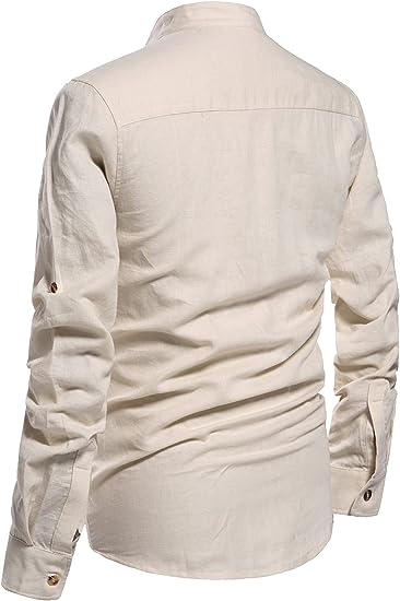 - Casual henley shirts, Roll-up Sleeves, Long Sleeve linen shirts, Button Front, Stand collar, featured button detail,Solid Colors,Casual, and Trendy shirt. Perfect for Spring and autumn.