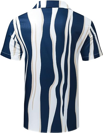 - Stylish Design: men's hawaiian shirt with a variety of elements such as stripe, The design is eye-catching and perfect for a beach vacation or casual summer outing.