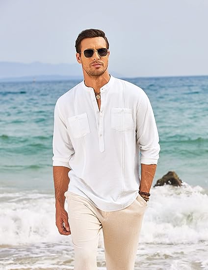 - 【MATERIAL】: Made from comfortable and high quality cotton linen fabric, the henley shirt is lightweight, breathable and soft touch, Machine Wash do not shrink and fade, and quick dry.