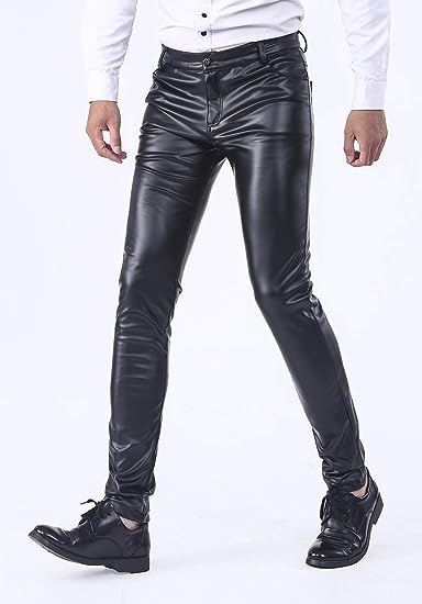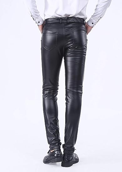 - Slim fit leather jeans, elastic leather give you more comfy wearing experience, thin velvet inside keeps you warm in autumn and also absorb sweat.